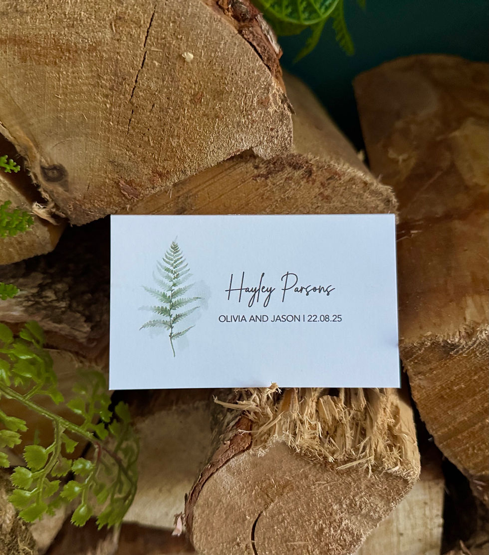 Enhance your special day with a range of beautifully printed place names that perfectly match your colour scheme and personalised with your guests' names. Create a seamless and elegant atmosphere that your guests will appreciate, making your event truly unforgettable. Examples below can be purchased online however please don't hesitate to contact me jo@jhughesweddingstationery.co.uk to have your place names made to match the theme of your Big Day.