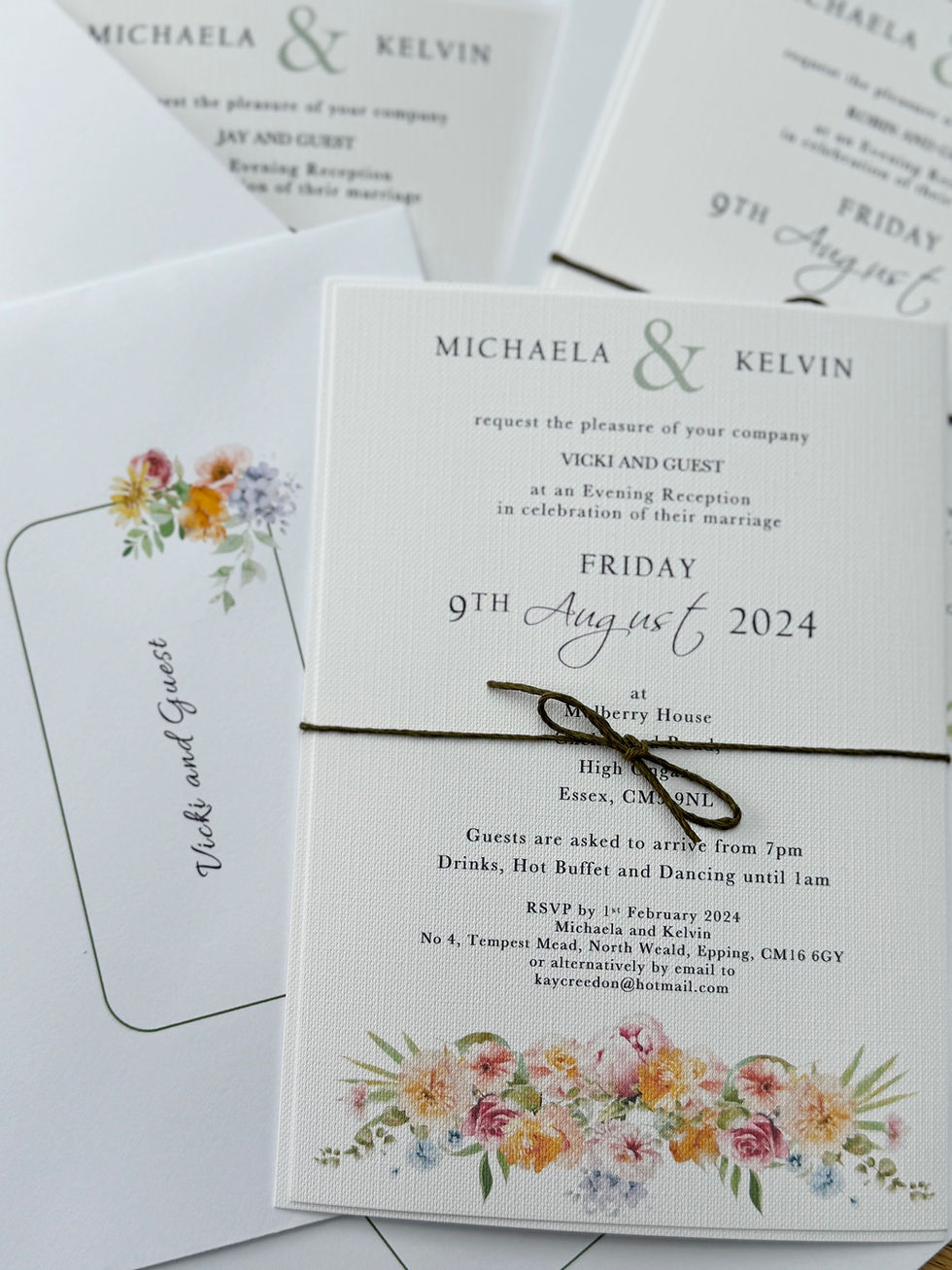OPTIONAL EXTRAS: RSVP cards with envelopes (except pocketfolds which include RSVPs), extra inserts such as menus, order of day etc.